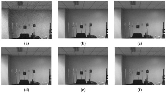 Denoising effect diagram. (a) Noisy image; (b) NLM; (c) FastNLM; (d) improved NLM; (e) improved FastNLM; (f) our algorithm.