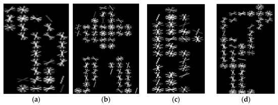 The other three features are BRIEF, HOG, and optical flow, on the entire body (silhouette). Among them, BRIEF, Binary Robust Independent Elementary Features, is one of the most-used feature extraction methods in the computer vision area due to its performance and robustness. In other words, binary descriptors for some of the points that may be marked in an image are obtained. It achieves this by comparing the pixel intensity at certain chosen locations in a local neighborhood around these key points. Surrounding each key point is a window region, known as a patch, which samples pixel pairs with offsets inside this patch. It then examines the relation of the two. If the first pixel’s intensity is more than the second, the value is 1; otherwise, the value is 0. These binary comparisons are summed up to arrive at the binary descriptor of the key point, which can be easily used to search for a similar key point descriptor from some other images. This makes BRIEF particularly suitable for applications where it is required to quickly find the corresponding features for some tasks such as object recognition and tracking. Its implementation can be seen in Equation (8).
