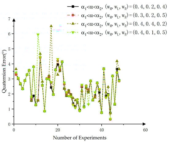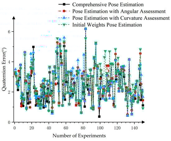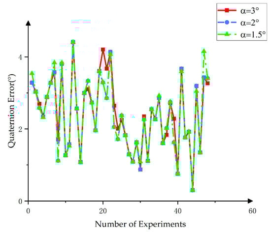 A smaller quaternion difference value suggested that the estimated pose was closer to the true pose. As shown in Figure 16, selecting α = 2° as the angular threshold demonstrated the highest accuracy.