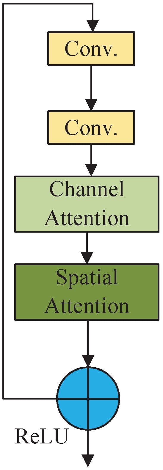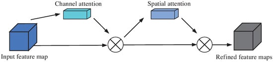 To better leverage the strengths of attention mechanisms, we established the Convolutional Block Attention Module (CBAM) architecture, which combines the advantages of both channel and spatial attention mechanisms. CBAM first applies channel attention to adaptively highlight the most informative feature channels. It then employs spatial attention to refine the focus on critical spatial regions of the feature map by generating descriptors. By sequentially integrating these two attention mechanisms, CBAM effectively enhances feature representation, improving model performance with minimal computational overhead. The structural schematic is shown in Figure 5.