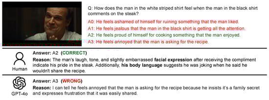 - Prioritization of general interpersonal tendencies—When interpreting deep psychological states inferred from facial expressions or speech, humans may prioritize the norms of interpersonal relationships over specific details from the video.
