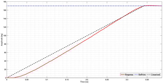 Another notable controller configuration, which is employed in this paper, is cascade P-PID topology. This controller is implemented considering two cascade levels: external and internal. The external uses a P controller and the internal uses a PID controller, so the output of the external control action is the input of the internal cascade controller, refining the dynamic response to ensure precision and robustness in the control [50]. Figure 6 shows the control structure schematically: