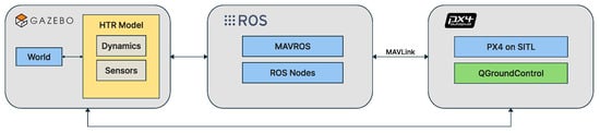 - Simulations using software-in-the-loop in the Gazebo software environment using real agricultural scenarios, allowing the evaluation of performance in complex PA missions and validating the aircraft in close to real-world conditions before experimental tests with the HTR’s physical implementation;