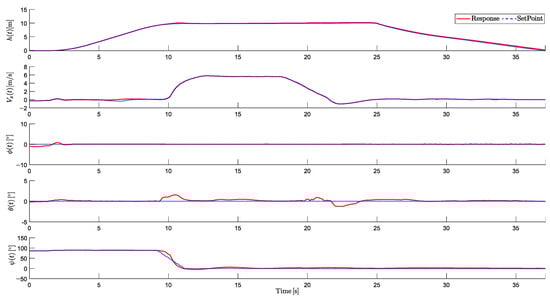 Overall, this comparison highlights that the HTR achieves enhanced performance, executing the proposed trajectory with more stability and adherence to the desired altitude. These results confirm the HTR’s control responses and demonstrate its effectiveness throughout trajectories. It ensures its capability to manage complex trajectories in PA applications.