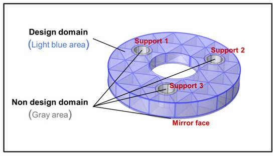 - Park, K.S.; Lee, J.H.; Youn, S.K. Lightweight mirror design method using topology optimization. Opt. Eng. 2005, 44, 053002. [Google Scholar] [CrossRef]