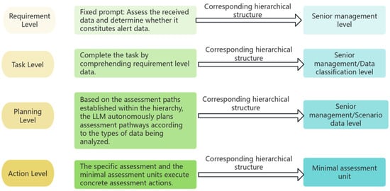 To bridge this gap, the research presented in this paper aims to enhance the efficiency and accuracy of assessment by interacting with real-time sensor data through a multi-level structured LLMs, performing step-by-step and hierarchical assessment processing to determine whether the data constitute an alarm. This approach is expected to improve the efficiency and accuracy of assessments, particularly when dealing with complex tasks and data analysis.
