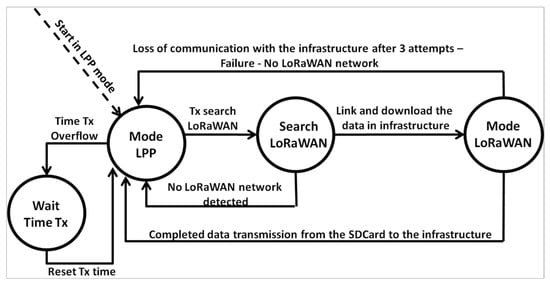 LoRa [69,70,71,72] is a wireless transmission technology that uses radio frequency based on the chirp spread spectrum (CSS) developed by Semtech. It offers several advantages in long-distance communication, especially in scenarios that require low energy consumption, reliability, and extended coverage. In the context of the Amazon, where communication infrastructure is limited and environments are challenging, LoRa stands out for its characteristics. The main advantages include: