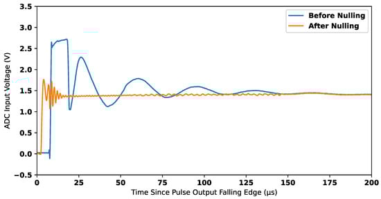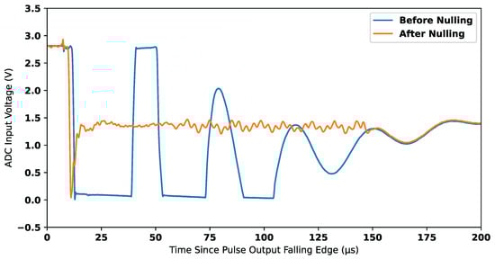 In Equation (4), V refers to the sampled voltage at time t, μs, μs, and 0 μs corresponds to the falling edge of the injected pulse; n is a constant of 945, which represents the number of samples in each windowed waveform.