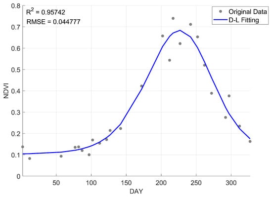 Figure 4 presents the fitted NDVI curve for P. australis. After data fitting and reconstruction, the trend becomes more pronounced, allowing for a more accurate representation of the phenological dynamics of wetland vegetation.