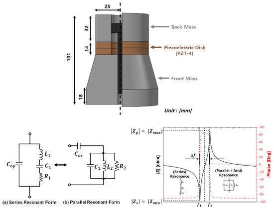 - Joo, C.D.; Kim, T.K. A Study on the Underwater Environment Load Modeling and Impedance Characteristics Analysis of Langevin Type Piezoelectric Transducer. Trans. Korean Inst. Electr. Eng. 2022, 71, 1812–1819. [Google Scholar] [CrossRef]