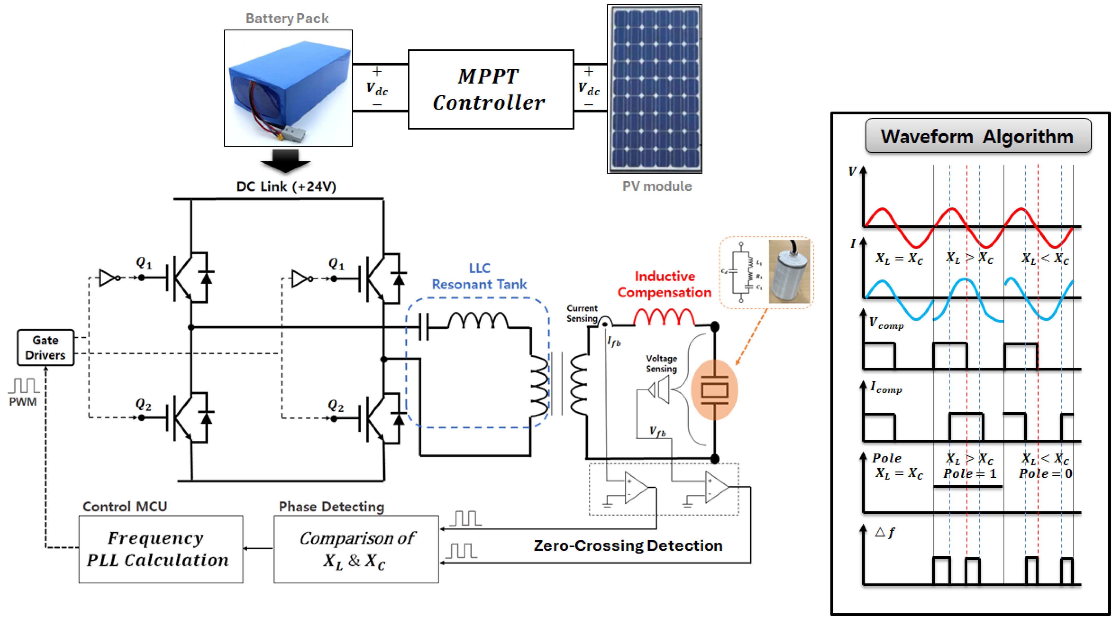 The transducer’s reverse piezoelectric effect must be applied to employ ultrasonic vibrations to suppress algae blooms, necessitating a power conversion device capable of controlling the input power. An LLC resonant tank was designed to secure the operating range based on the resonant frequency of the Langevin piezoelectric transducer. Additionally, impedance matching can be improved through inductive compensation, considering the capacitive characteristics of the piezoelectric transducer [4].