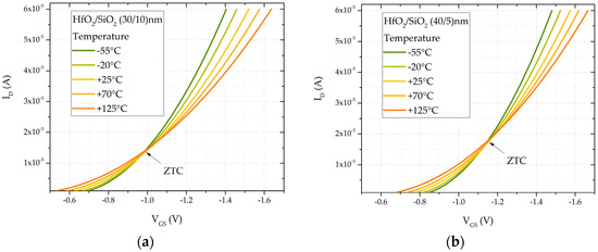 - Carbonetto, S.H.; Inza, M.A.G.; Lipovetzky, J.; Redin, E.G.; Salomone, L.S.; Faigon, A. Zero temperature coefficient bias in MOS devices. Dependence on interface traps density, application to MOS dosimetry. IEEE Trans. Nucl. Sci. 2011, 58, 3348–3353. [Google Scholar] [CrossRef]