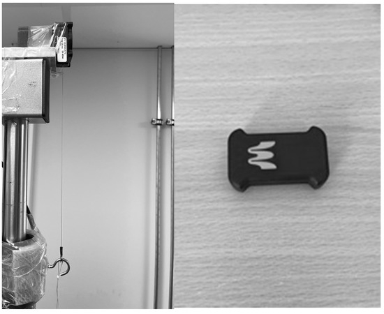 The load–velocity profile was monitored using two mobile systems: a wireless inertial measurement unit (EnodePro sensor, Blaumann & Meyer Sports Technology UG, Magdeburg, Germany) with a sampling rate of 200 Hertz and a displacement sensor, model WPS-1250-MK46-CR-P10 (Micro-Epsilon, Messtechnik GmbH & Co., KG, Ortenburg, Germany), which tracked the displacement during the movement. This sensor (left picture in Figure 4) operates based on variable resistance (potentiometer). A wiper moves along a resistance strip as the object being measured moves. The resistance changes proportionally to the wiper’s position, and this change is converted into an electrical voltage, which is then measured and is directly proportional to the object’s position. The voltage is transmitted through a DMS GEN5 preamplifier to an A/D converter (National Instruments DAQ 700, Austin, TX, USA), where U is digitized. The number of bits determines the accuracy of the measurement: the higher the bit count, the finer the resolution of the force plate. In this study, an A/D converter with a 13-bit resolution was used, capturing n = 213 = 8192 values. The converted signal could be recorded via a computer. Since only the vertical axis was measured, a single-channel signal was considered, which could be analyzed using an individual measurement program. The sampling was performed at a frequency of f = 1000 Hz. Values were recorded with accuracy of <0.15 mm (Micro-Epsilon, Messtechnik GmbH & Co., KG, Ortenburg, Germany). Essentially, the sensor was used to continuously measure the displacement, and, from these data, the velocity was determined by calculating the rate of change in the position (displacement) of the object over time. This manual sensor was considered as the gold standard, as it appears to be impossible to track the individual components of the velocity (way and time) with higher accuracy.
