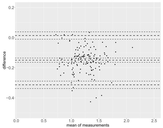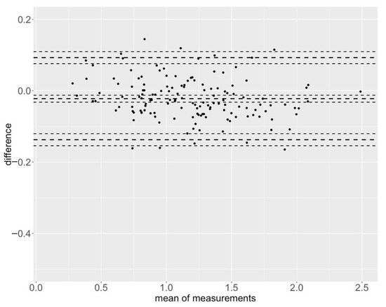 - Giavarina, D. Understanding bland altman analysis. Biochem. Medica 2015, 25, 141–151. [Google Scholar] [CrossRef] [PubMed]