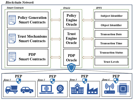 PEP: Within the zero-trust framework, the PEP implements access control policies. Situated between users and resources, it oversees access requests and grants or restricts access according to the authorization decisions made by the PDP. By implementing fine-grained access control policies, the PEP effectively protects system resources from unauthorized access and malicious activities. It also serves as the interface between IoT devices and the blockchain, facilitating seamless communication and ensuring the enforcement of dynamically updated access policies.
