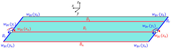 where is the displacement at the coordinates . It can be seen that the deflection is an integral function with variable limitation, which can be determined once values <, > at the lower boundary are known. The entire deformation of beams or panels can be reconstructed by sequentially splicing deflections of each beam segment.