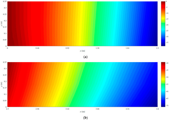 Reconstruction results of the solar panel B (thermal–mechanical loads): (a) the leading edge y = 0 mm; (b) the trailing edge y = 350 mm.