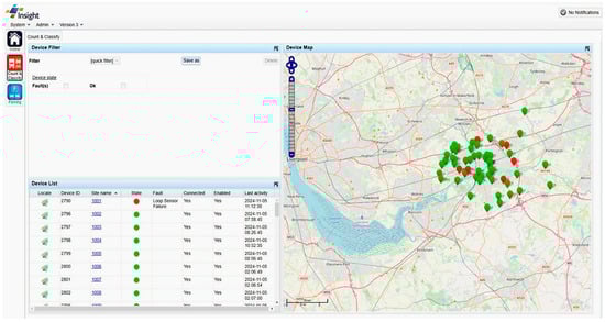 Traffic and road condition monitoring are essential for ensuring urban mobility’s safety, efficiency, and sustainability. Advanced systems incorporating sensors, cameras, and real-time communication technologies collect and analyze data on traffic patterns and infrastructure conditions []. This information exchange has given rise to interactive Vehicle-to-Infrastructure (V2I) communication networks, leveraging protocols like Wi-Fi, LoRa (Long Range), 4G/5G, and other technologies to support seamless connectivity and enhanced mobility []. Another critical aspect is traffic management, which focuses on optimizing vehicle flow, reducing congestion, and enhancing the driving experience through intelligent planning and innovative solutions such as smart traffic lights and dynamic signaling systems []. Additionally, vehicular traffic has been harnessed as a source of energy, enabling the development of systems that harvest, store, and supply energy to power road infrastructure []. Monitoring road conditions is equally vital, allowing for the timely detection and resolution of issues like potholes and asphalt deterioration, thereby improving both safety and comfort for road users []. Implemented cooperatively, all previous practices enhance urban living standards and support environmental sustainability by fostering smarter, more responsible mobility solutions [].