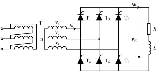 The three-phase bridge rectifier is widely used in motor drive and speed control systems. In this section, the CFAM model of the three-phase bridge-controlled rectifier circuit shown in Figure 5 is developed using the proposed method.