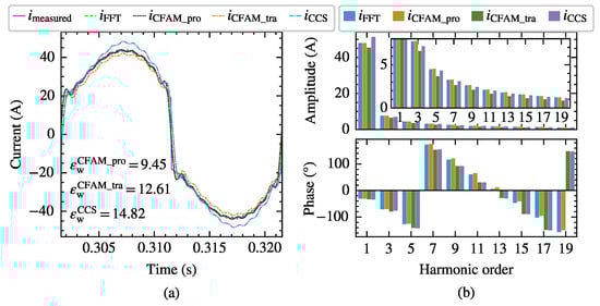 Table 9 and Table 10 list the mean and variance of the evaluation metrics for the three harmonic models across 20 test samples under intermittent and continuous load current conditions, respectively. Only the characteristic harmonics within the 25th order are considered during the calculation process . The results illustrate that the mean value of the current amplitude relative error for the proposed CFAM model is lower than , and the mean value of the current phase absolute error is lower than . In addition, the proposed analytical CFAM model exhibits smaller means and variances for the evaluation metrics compared to the traditional CFAM model and CCS model, indicating higher estimation accuracy and more stable performance in harmonic current estimation.