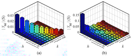 - Determination of CFAM analytical model parameters. This paper utilizes the CFAM model described in (1), with the matrix form presented in (13). The CFAM element represents the coupling relationship between the h-th current and the k-th voltage and the analytical expression for as proposed in this paper is presented in (14).where represent the different order currents on the AC side of the harmonic source; denote the different order voltages at PCC; is the phasor form of ; and are the amplitude and phase of , respectively.