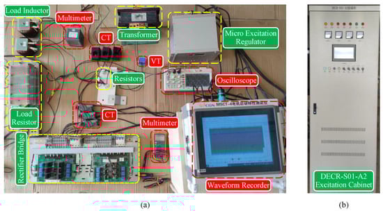 (a) Experimental test platform for the three-phase bridge rectifier. (b) Excitation cabinet.