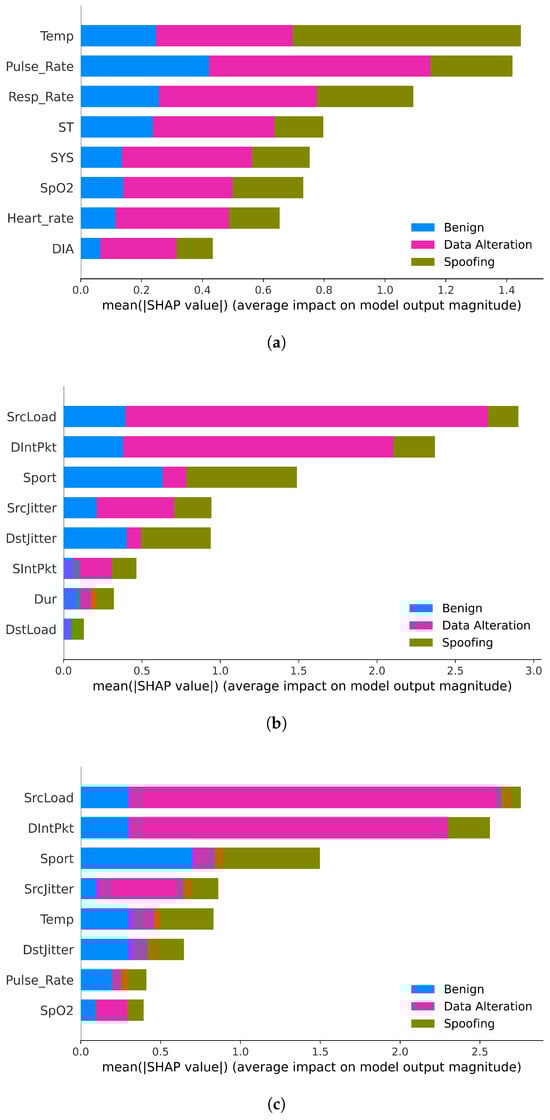 - Lui, P.H.; Siqueira, L.P.; Kazienko, J.F.; Quincozes, V.E.; Quincozes, S.E.; Welfer, D. On the Performance of Cyber-Biomedical Features for Intrusion Detection in Healthcare 5.1. In Proceedings of the 25th Brazilian Symposium on Applied Computing in Health (SBCAS); Sociedade Brasileira de Computação—SBC: Porto Alegre, Brazil, 2025; pp. 389–400. [Google Scholar] [CrossRef]