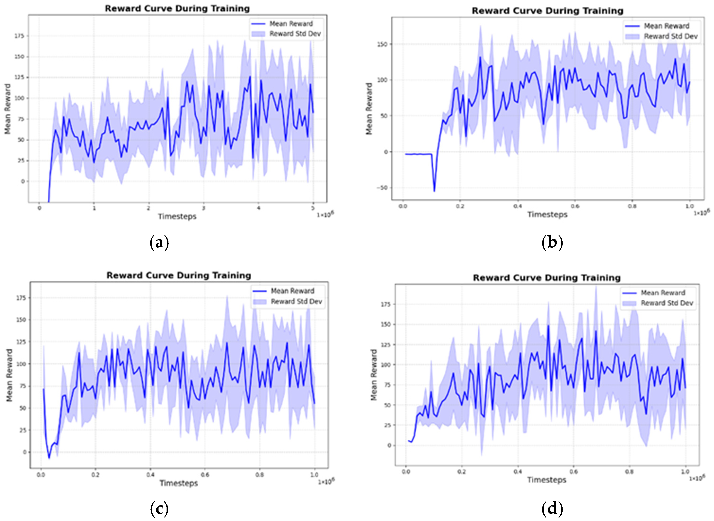 γ were introduced to balance exploration and long-term rewards effectively. These hyperparameters were chosen based on several experimental validations, forming a reliable foundation for subsequent comparative studies. Note that the ‘policy noise’ in