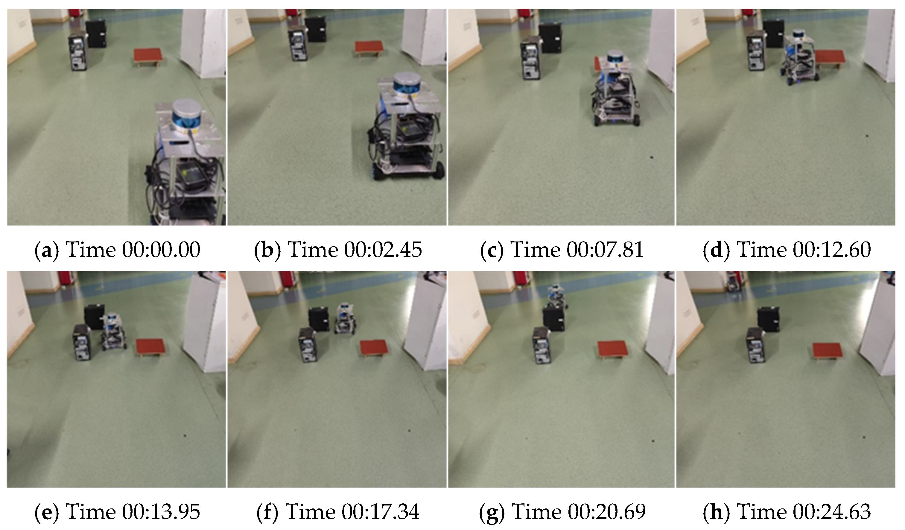 Figure 7, the robot autonomously planned its path and successfully navigated through multiple static obstacles, with clear temporal progression captured in each frame. The generated trajectory exhibited strong continuity and smooth transitions, while no collisions occurred throughout the experiment. These results confirm the robustness and practical applicability of the proposed method under real-world deployment conditions.