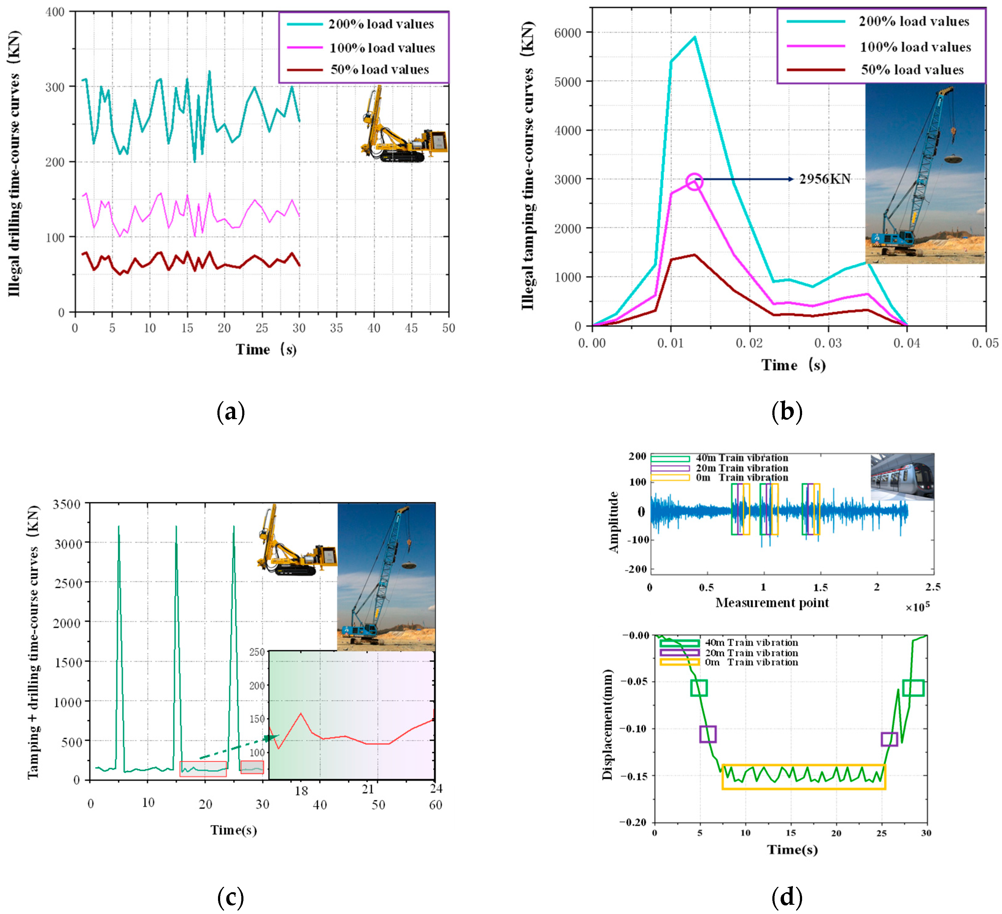 4.1. Extraction of the Dynamic Strain Features from Different Vibration Sources Generated in an Actual Metro Tunnel