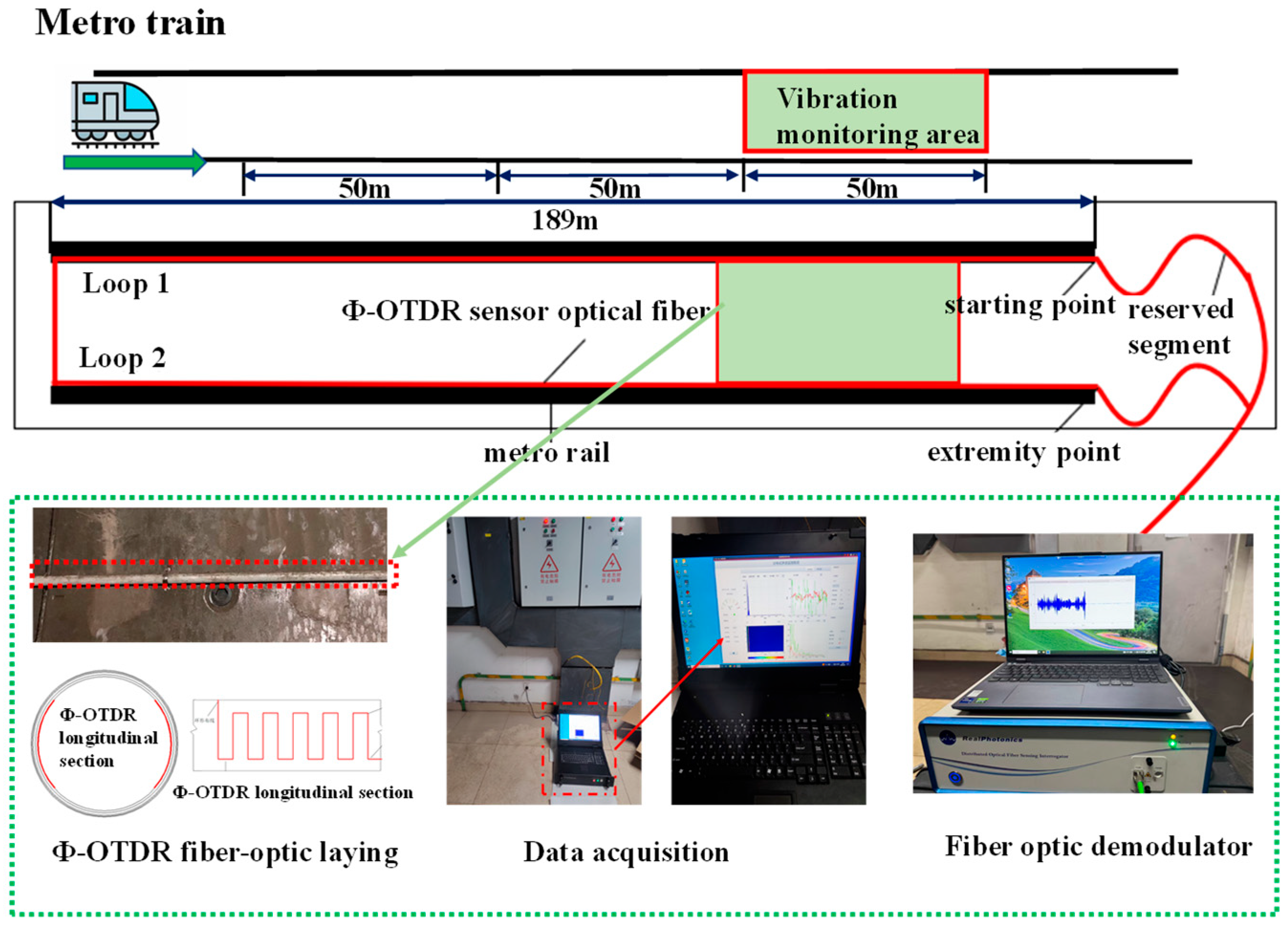 - Tu, G.J.; Zhang, X.P.; Zhang, Y.X.; Zhu, F.; Xia, L.; Nakarmi, B. The development of an Φ-OTDR system for quantitative vibration measurement. IEEE Photonics Technol. Lett. 2015, 27, 1349–1352. [Google Scholar] [CrossRef]