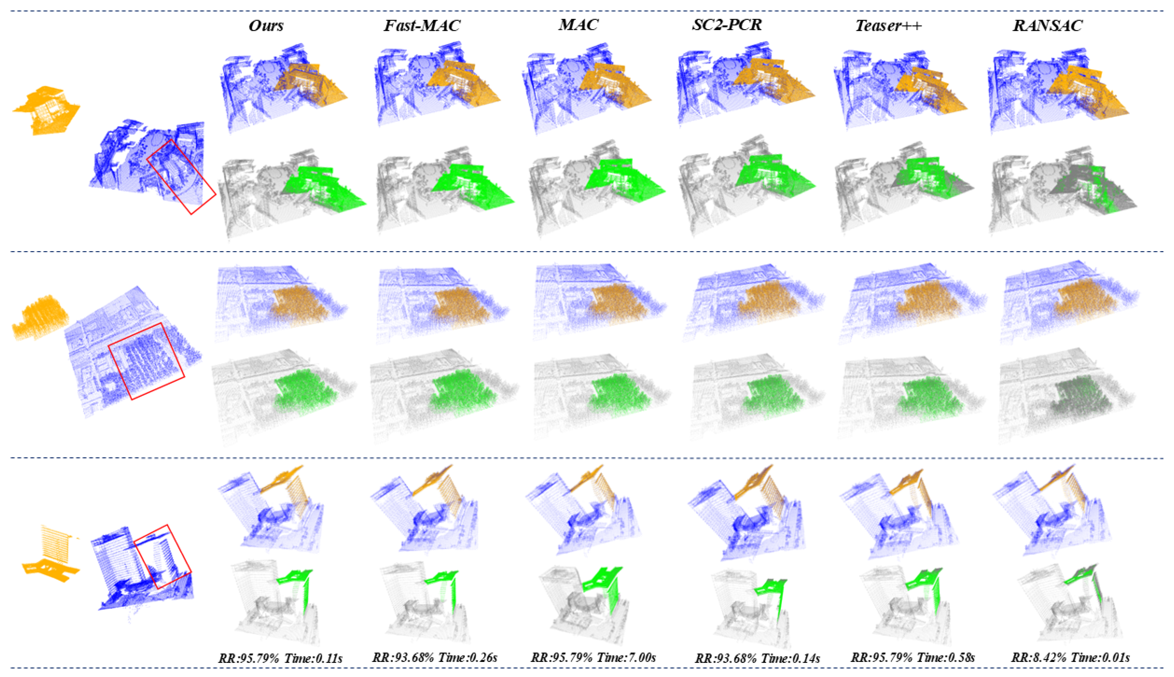 Teaser++ [45] | 69.47 | 0.01 | 1.36 | 0.03 | 75.79 | 0.00 | 0.98 | 0.08 | 84.21 | 0.00 | 1.55 | 0.26 | 84.21 | 0.02 | 6.36 | 1.01 |