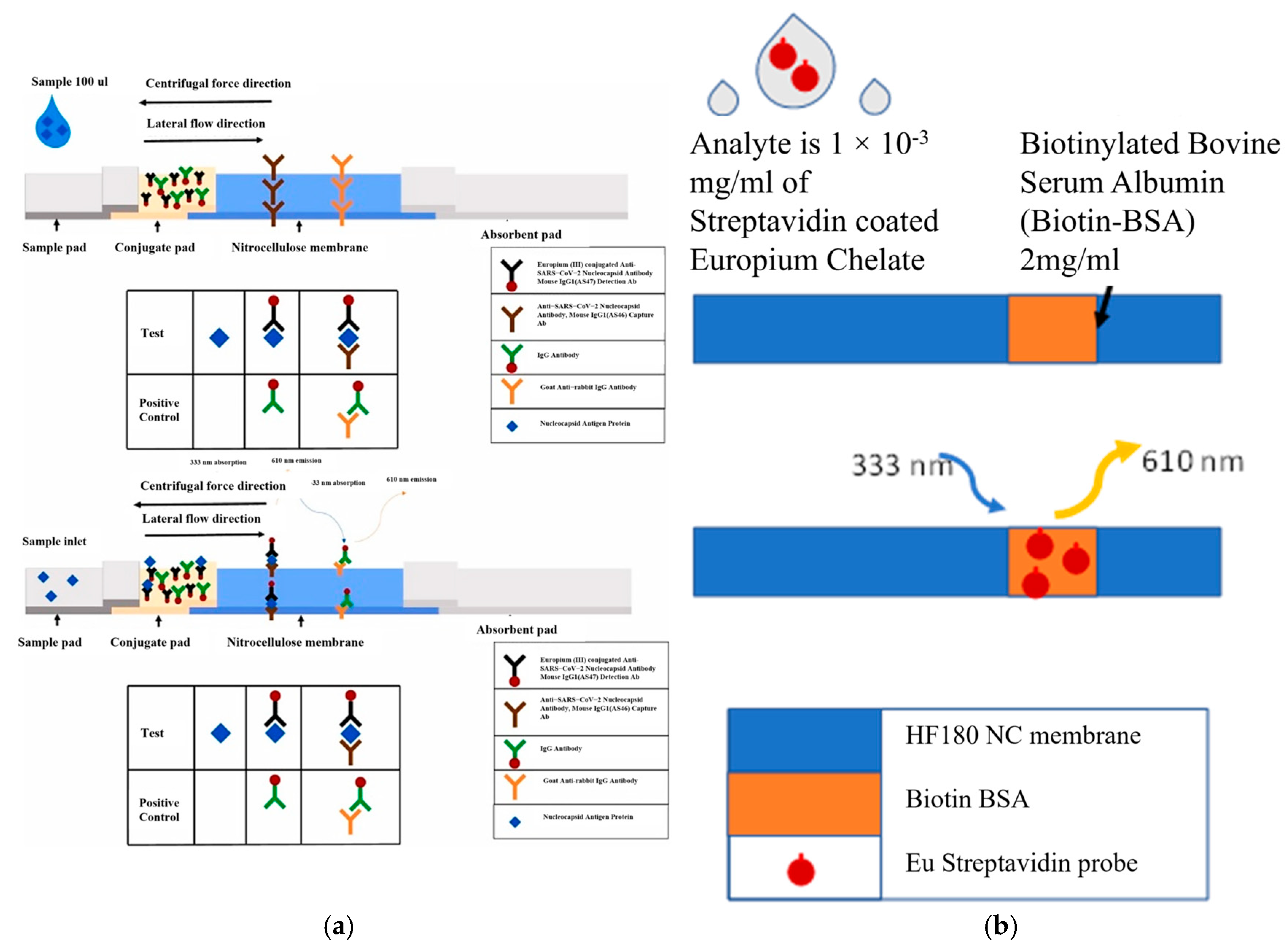 - Shen, M.; Li, N.; Lu, Y.; Cheng, J.; Xu, Y. An Enhanced Centrifugation-Assisted Lateral Flow Immunoassay for the Point-of-Care Detection of Protein Biomarkers. Lab Chip 2020, 20, 2626–2634. [Google Scholar] [CrossRef]