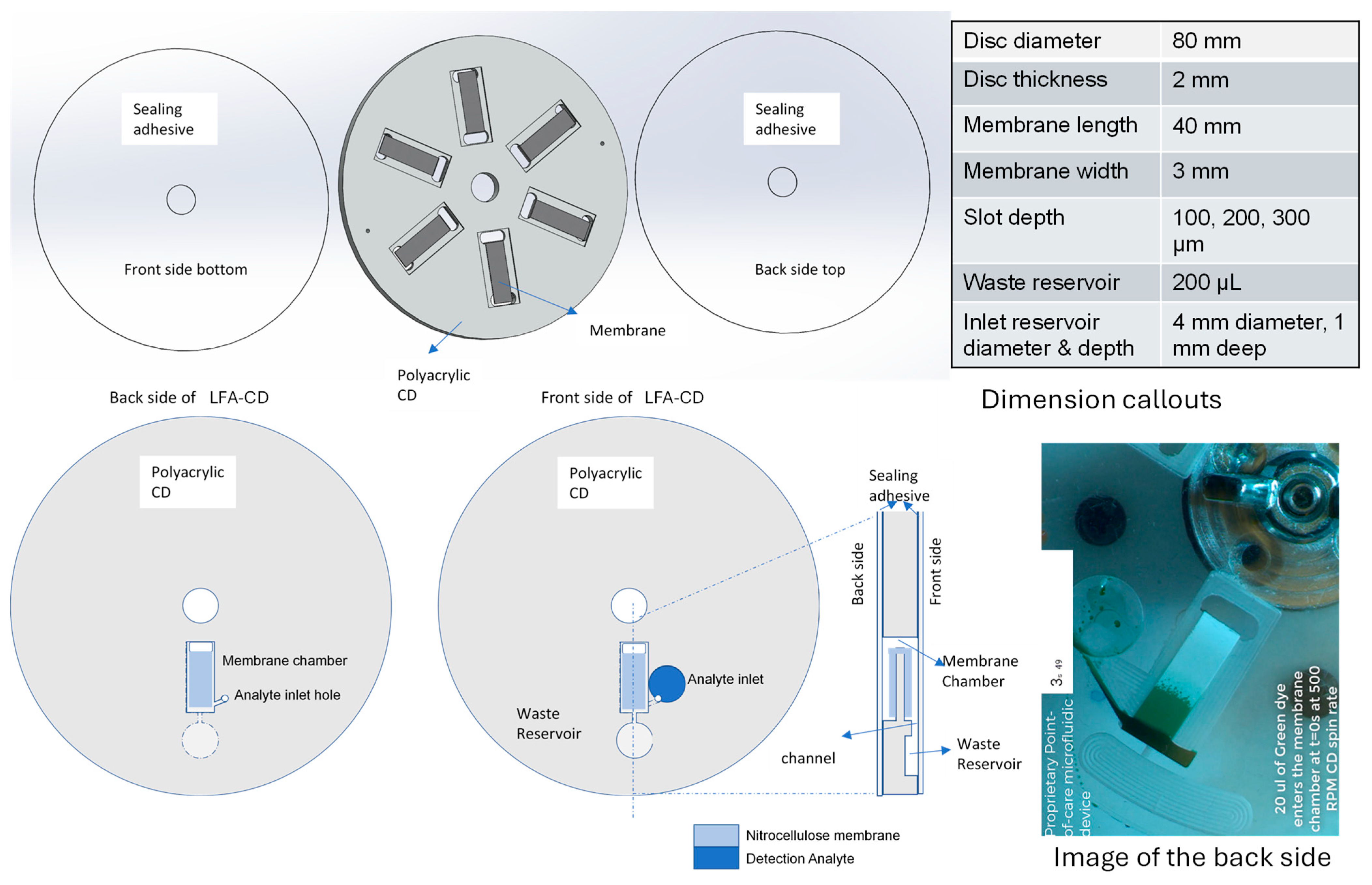 - Demonstrated that integrating lateral flow assays (LFAs) with a centrifugal Lab-on-Disc (LFA-CD) improves sensitivity by both increasing analyte dwell time at the test line and allowing for the increase of sample volume.