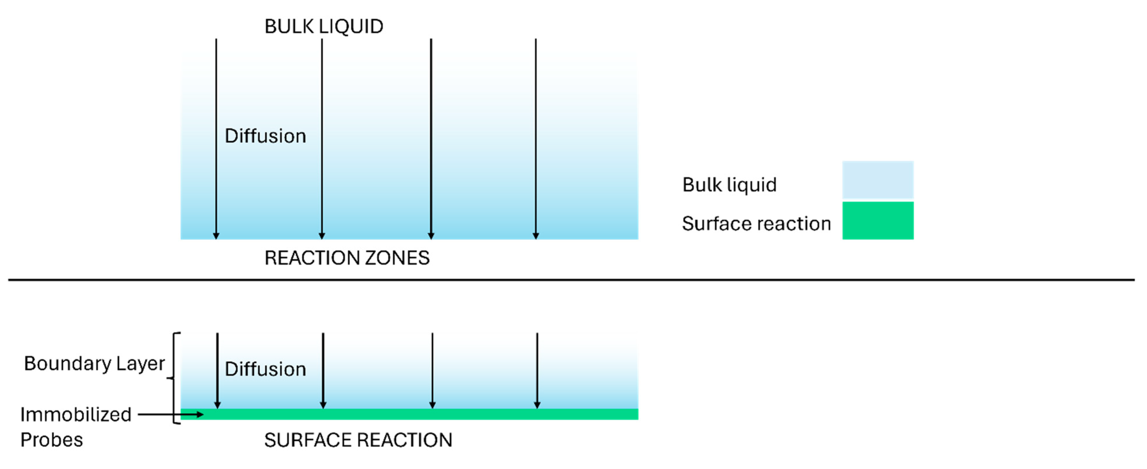 | Surface vs. bulk assay applicability | ✗ Bulk reactions with limited applicability for surface reactions | ✗ Bulk transport | ✗ Mass flux at interface, no reaction kinetics | ✓ Applicable for surface-based reactions |