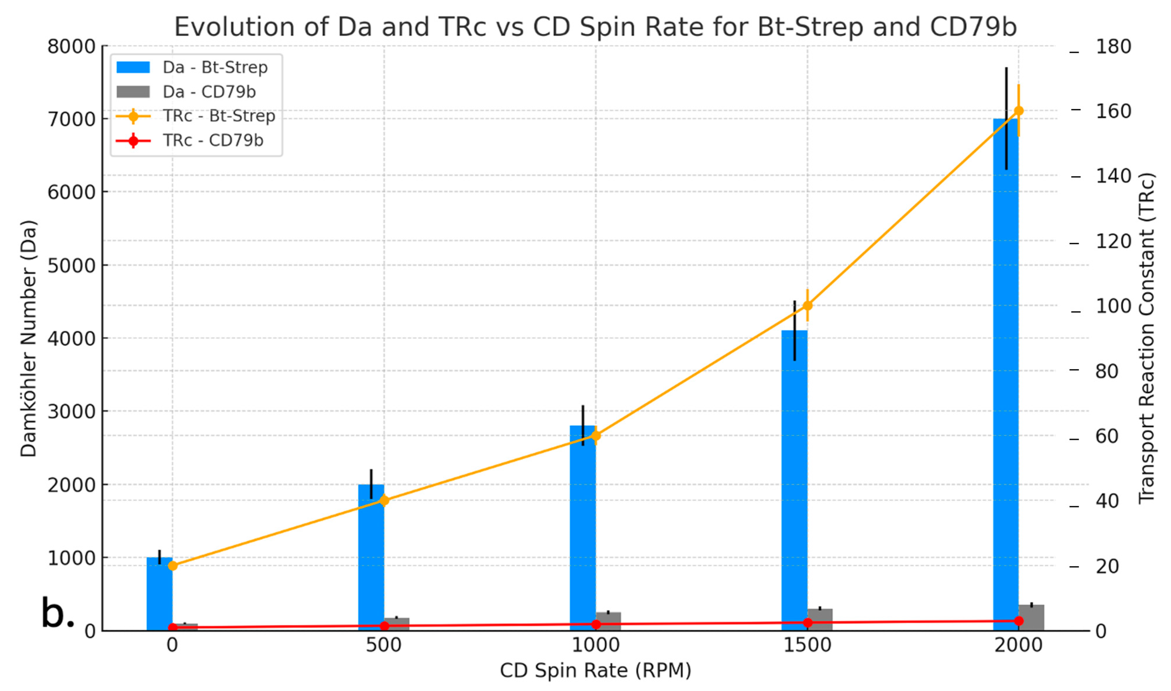 - Introduced a new Transport Reaction Constant (TRc) that extends the traditional Damköhler number by incorporating film thickness, enabling better prediction of surface-based assay performance.