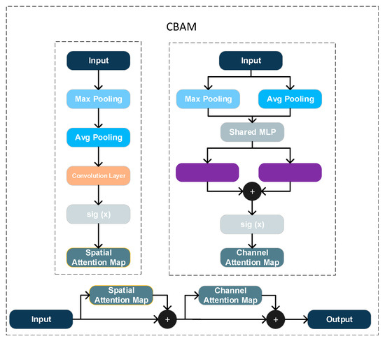 - Woo, S.; Park, J.; Lee, J.-Y.; Kweon, I.S. CBAM: Convolutional block attention module. In Computer Vision—ECCV 2018; Ferrari, V., Hebert, M., Sminchisescu, C., Weiss, Y., Eds.; Lecture Notes in Computer Science; Springer: Cham, Switzerland, 2018; Volume 11211, pp. 3–19. [Google Scholar]