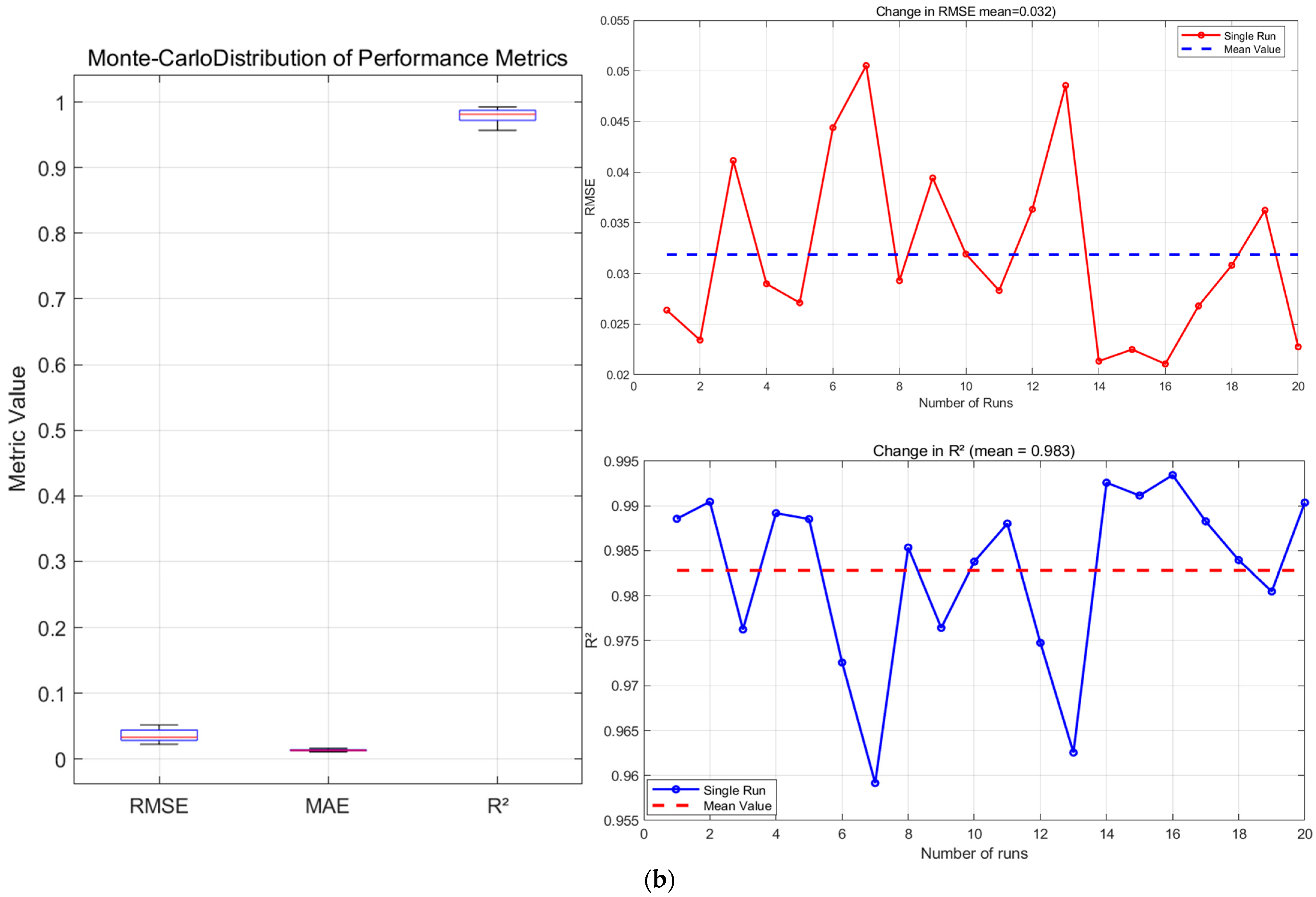 Figure 5b) maintains similar stability (RMSE variation < 1%) within the range of 80–200 trees, with performance reaching saturation at approximately 100 trees. The configuration of 100 trees was selected as the final setting, optimizing computational efficiency while maintaining prediction accuracy. The broad stable ranges of these two critical parameters validate the robustness of the proposed method, reduce the complexity of parameter tuning in practical industrial applications, and enhance the engineering practicality of the approach.