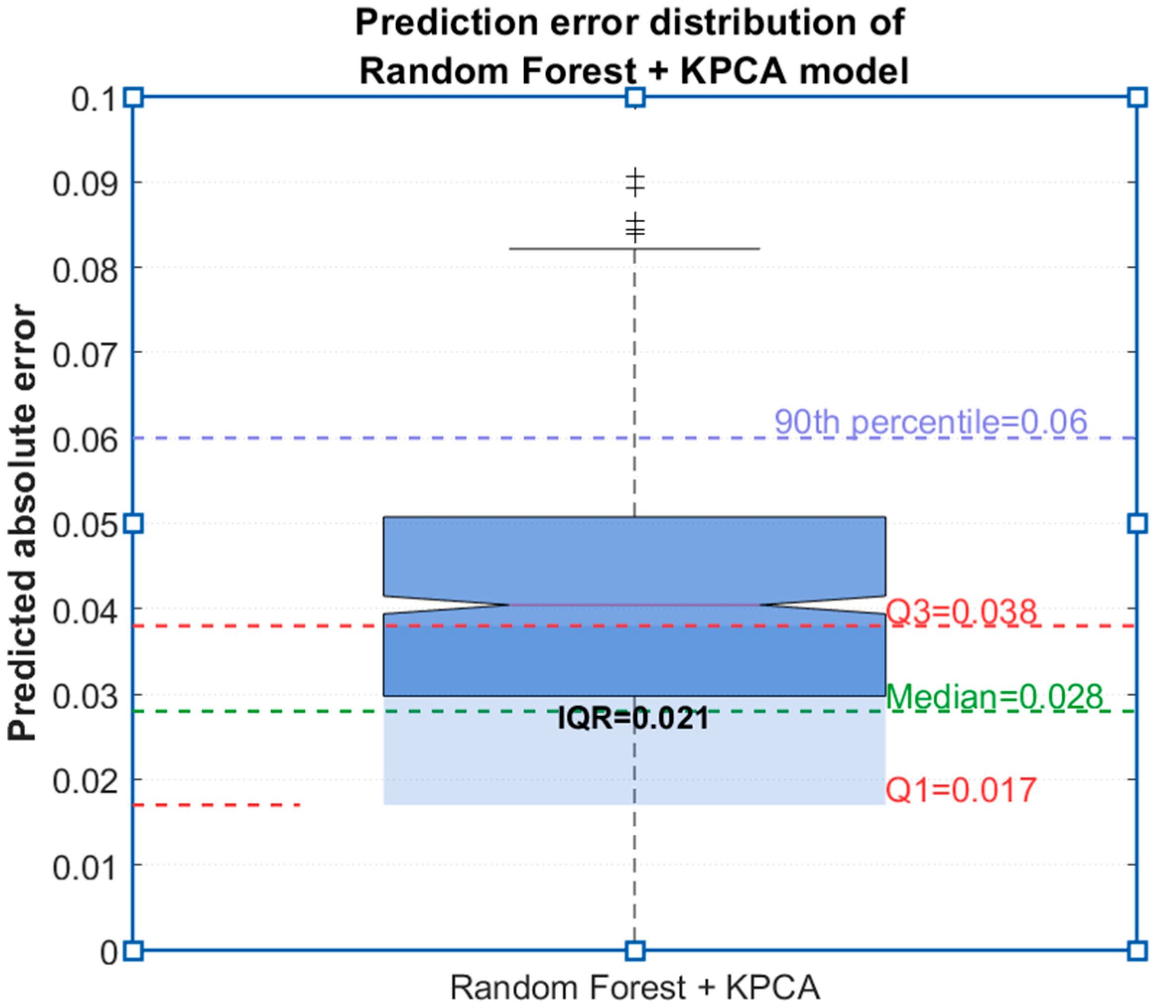 The boxplot of prediction errors of the random forest + KPCA model is drawn (