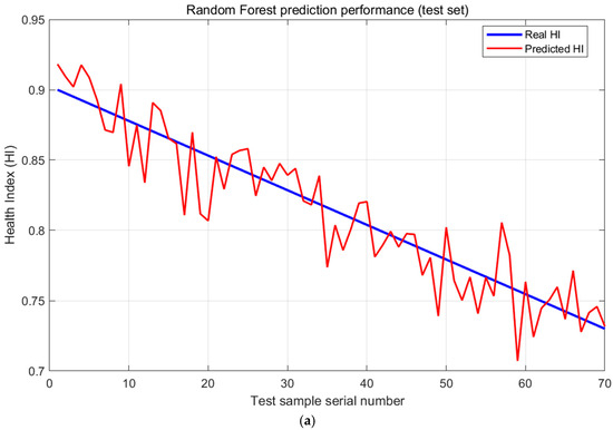 The comparison between predicted HI and actual HI on the test set (Figure 9a) shows that the prediction curve has a high fitting degree with the actual curve (R2 = 0.9828).