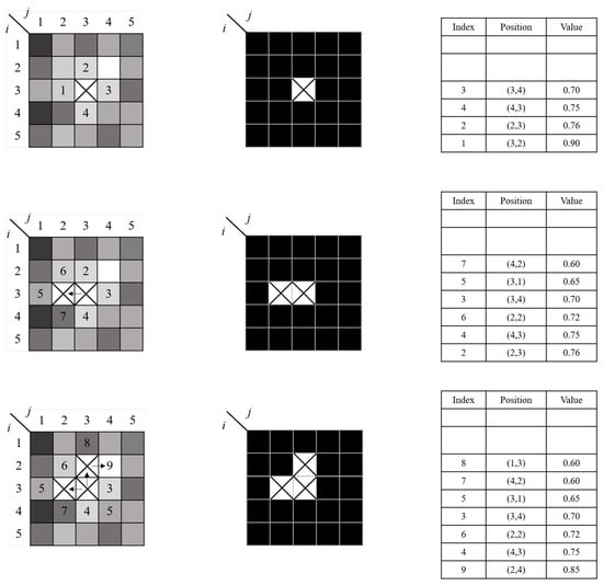 Quality-Guided Phase Unwrapping has been widely studied due to its efficiency and speed [51,60]. This method evaluates the quality of the wrapped phase using a quality map, and applies a flood-fill algorithm to initiate unwrapping from high-quality regions. This strategy effectively limits the propagation of unwrapping errors into low-quality areas, thereby enhancing both accuracy and stability. Su et al. proposed a reliability-guided phase unwrapping method based on parameter mapping, in which one or more parameters—such as modulation of the fringe pattern, spatial frequency, phase differences between neighboring pixels, and signal-to-noise ratio—are used to construct a parameter map. The phase unwrapping path is then guided by the high-reliability regions of this map. As illustrated in Figure 4, this approach effectively confines phase unwrapping errors to localized areas and demonstrates strong robustness [61].