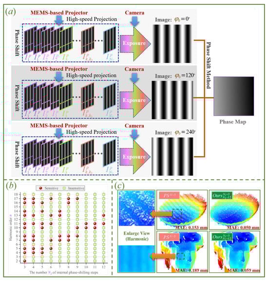 - Wang, J.; Yang, Y. Triple N-step phase shift algorithm for phase error compensation in fringe projection profilometry. IEEE Trans. Instrum. Meas. 2021, 70, 1–9. [Google Scholar] [CrossRef]