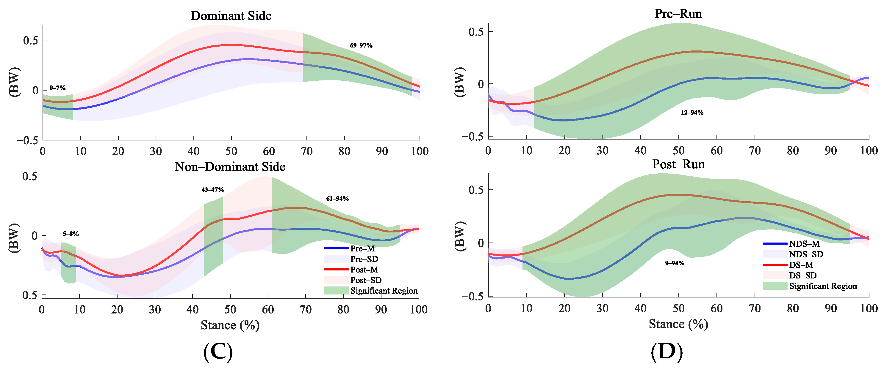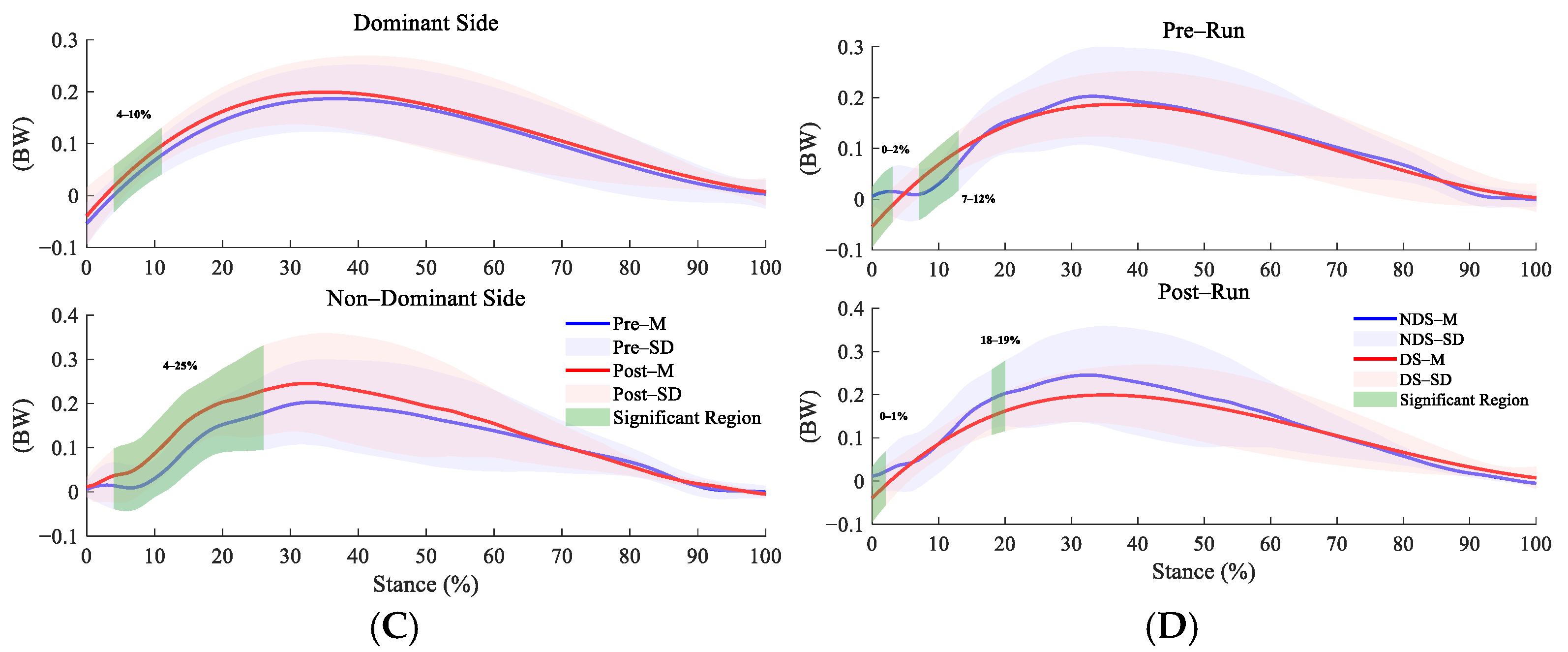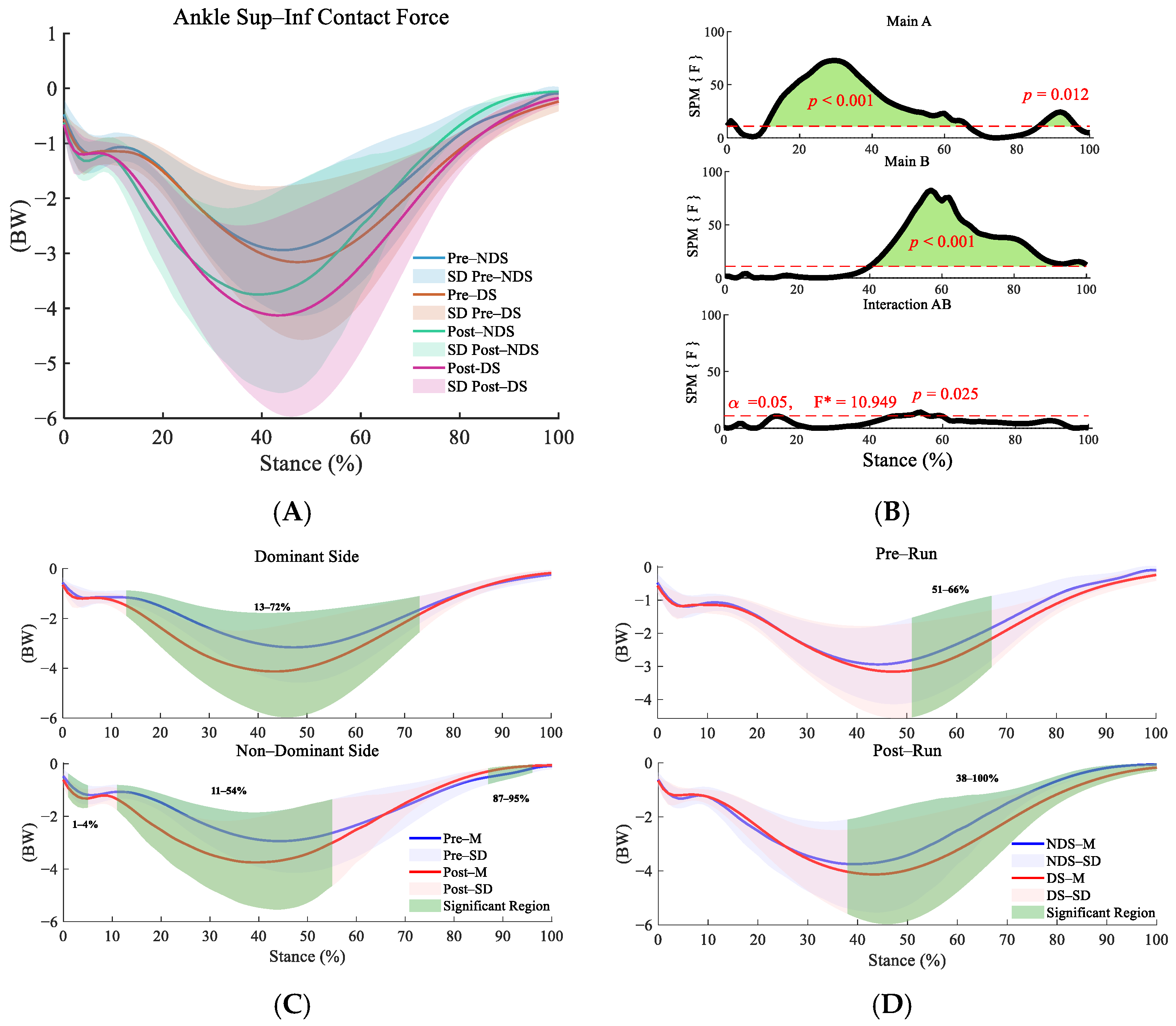 3.1. Bilateral Ankle Contact Force Before and After Running
