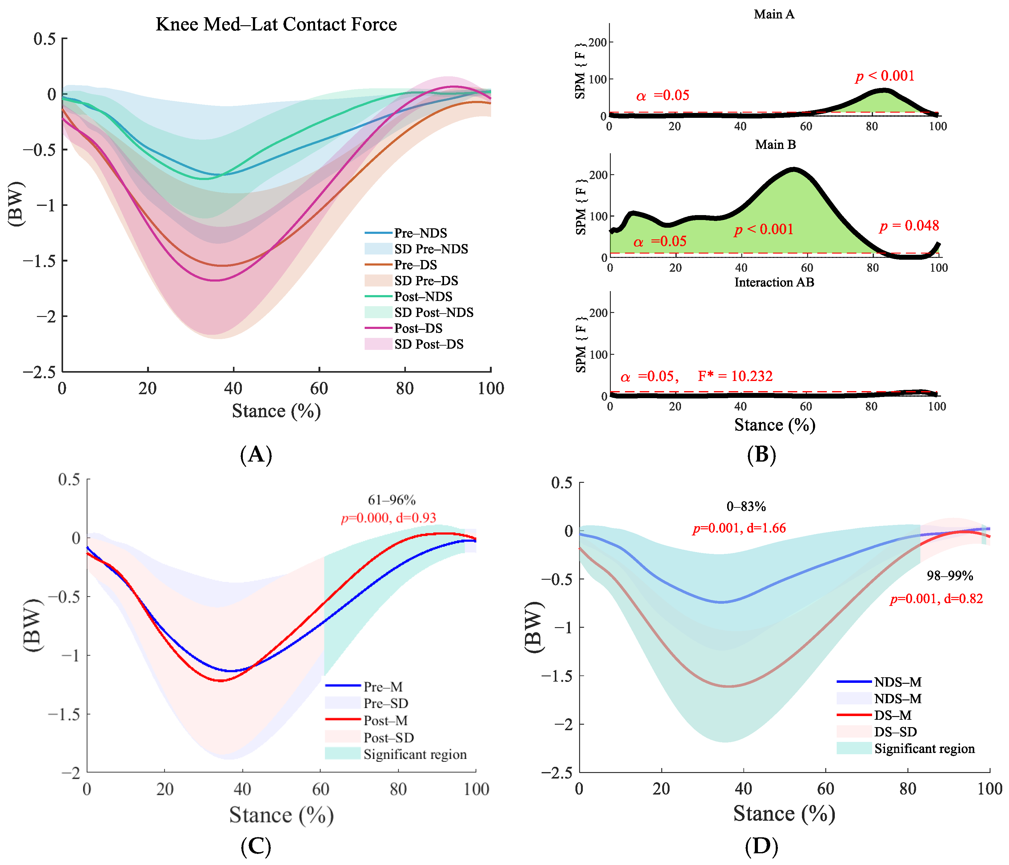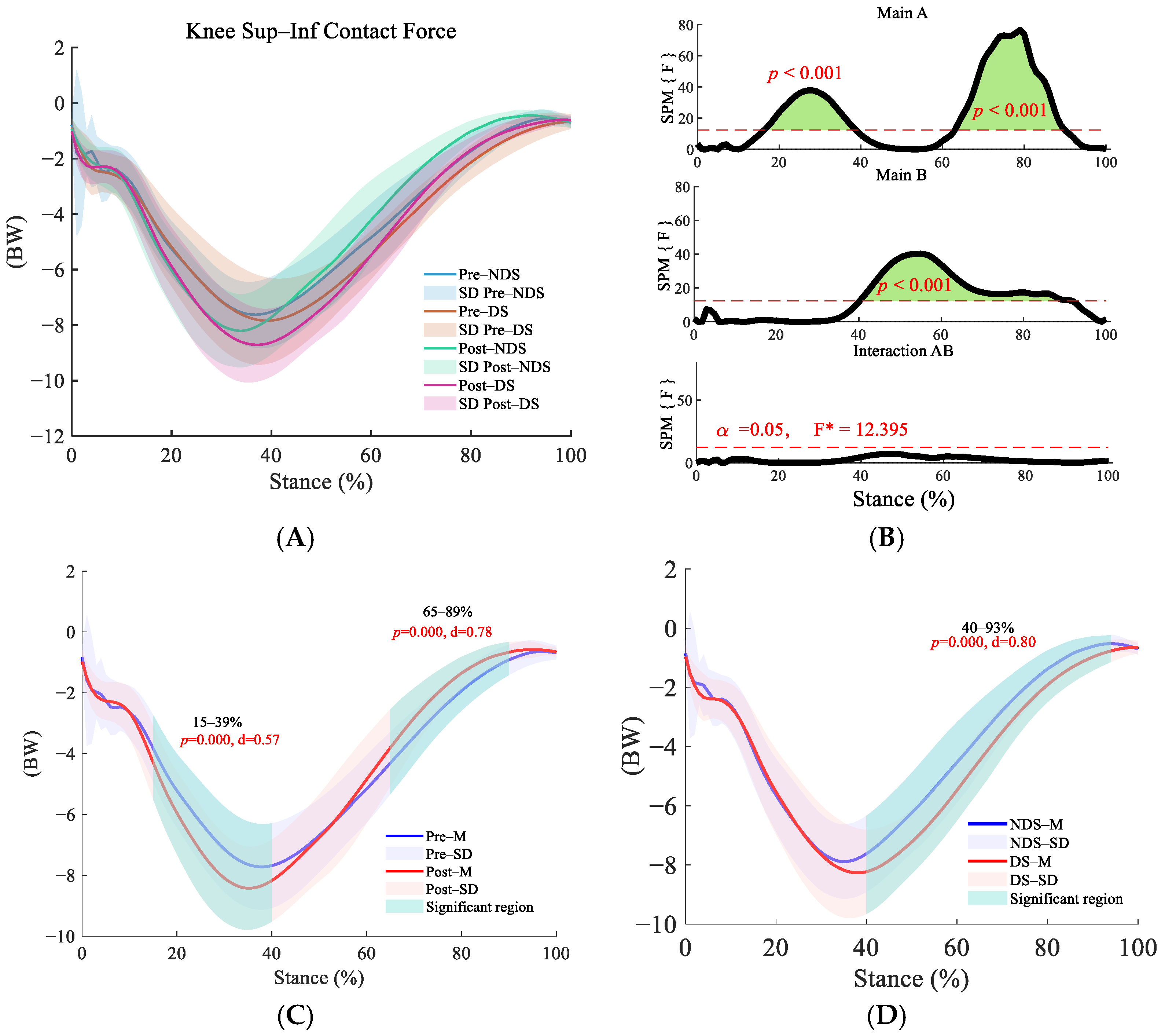 3.2. Bilateral Knee Contact Force Before and After Running