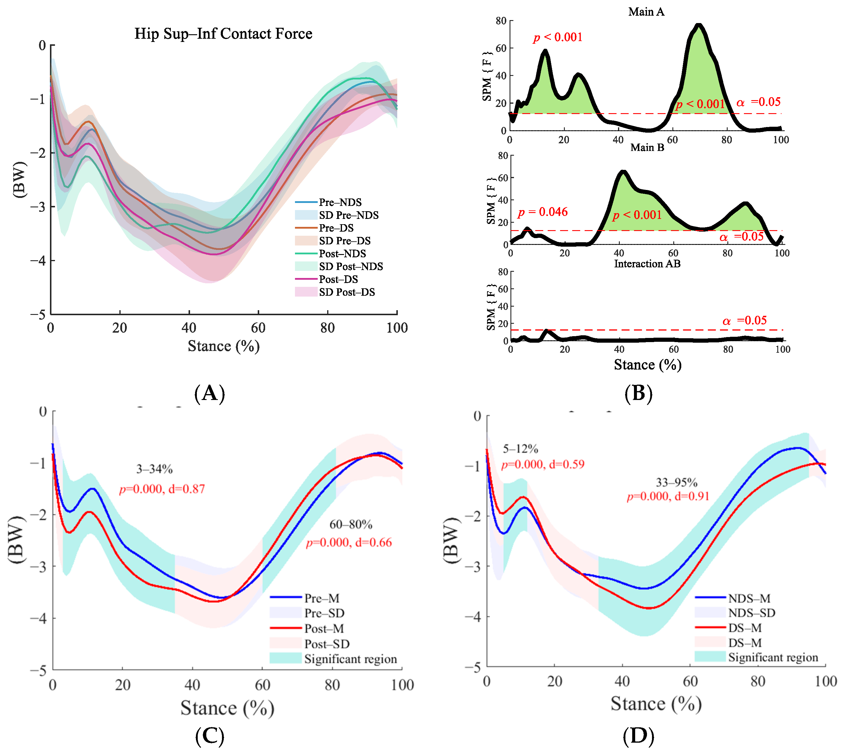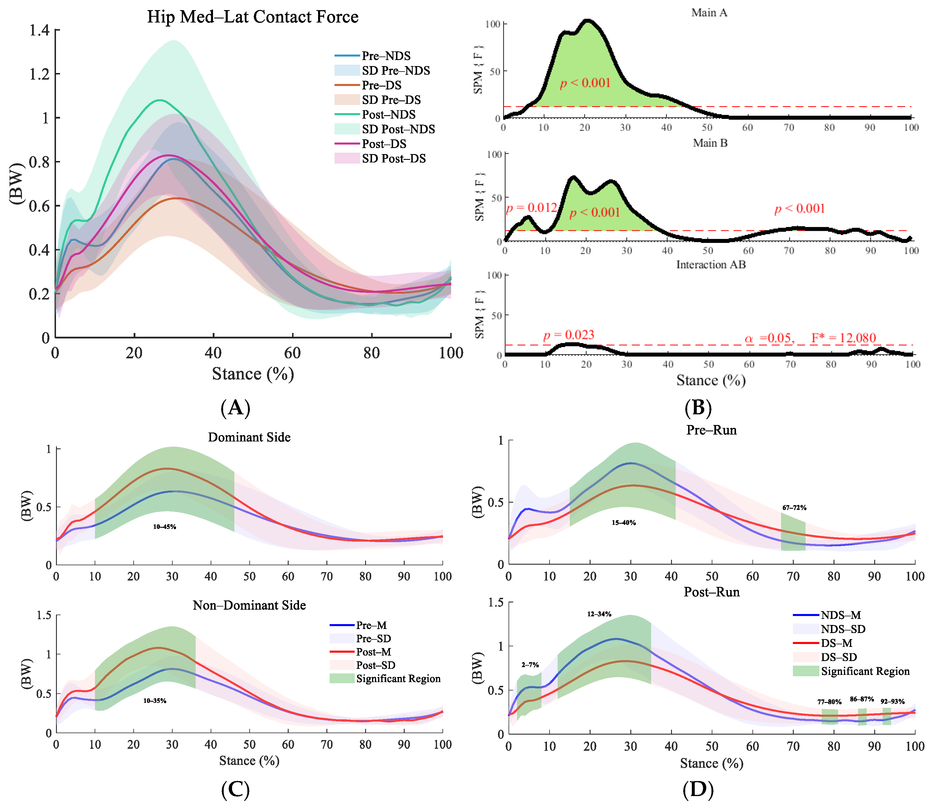 3.3. Bilateral Hip Contact Force Before and After Running