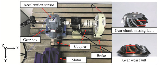Gears, as essential components of mechanical transmission systems, are widely used across industries such as wind power [1], aviation [2], marine [3], automotive [4], and industrial equipment [5,6]. Their operational condition directly impacts the reliability, efficiency, and safety of the entire system. However, due to prolonged exposure to alternating loads, impact vibrations, and complex working conditions, gears are highly susceptible to failures such as wear, pitting, and chunk missing. Undetected faults can result in equipment failures, production downtime, or even severe safety incidents [7,8]. As a result, gear health monitoring and fault diagnosis have long been a key focus in mechanical condition monitoring.