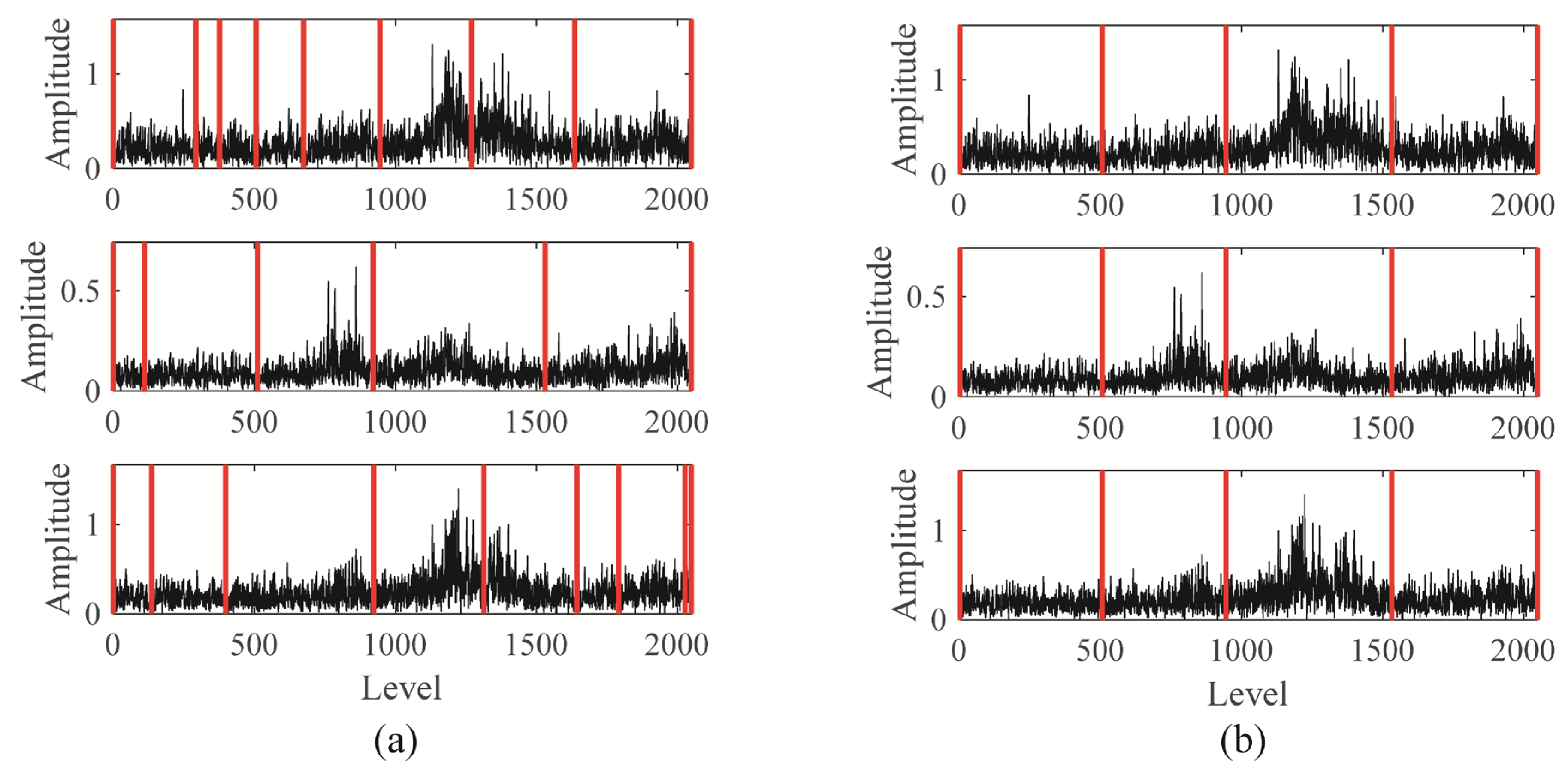 - Cheng, J.; Liu, Z.H.; Pan, H.Y.; Zheng, J.; Tong, J. An adaptive ultra-narrow band filtering method based on flexible sliding band segmentation. Mech. Syst. Signal Process. 2025, 229, 112560. [Google Scholar] [CrossRef]