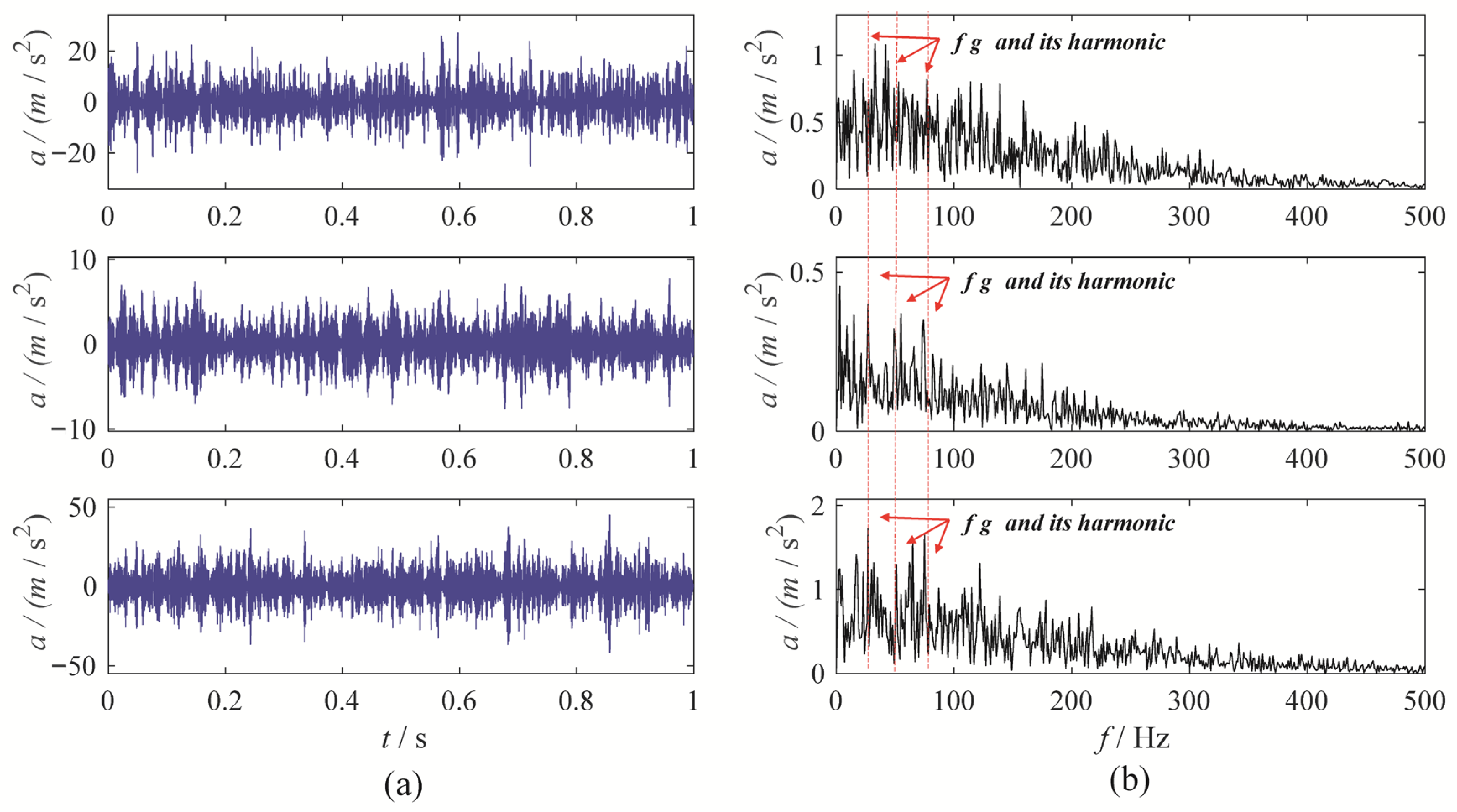 - Zhang, S.; Zhou, J.; Wang, E.; Zhang, H.; Gu, M.; Pirttikangas, S. State of the art on vibration signal processing towards data-driven gear fault diagnosis. IET Collab. Intell. Manuf. 2022, 4, 249–266. [Google Scholar] [CrossRef]