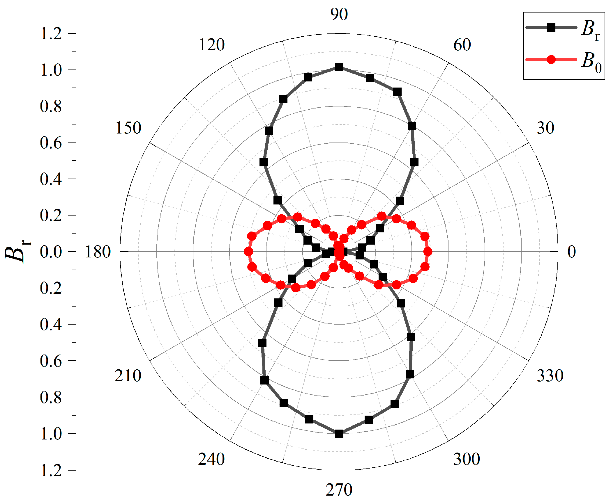 Figure 2 show a dipole-like distribution consistent with Equation (2). The radial component (