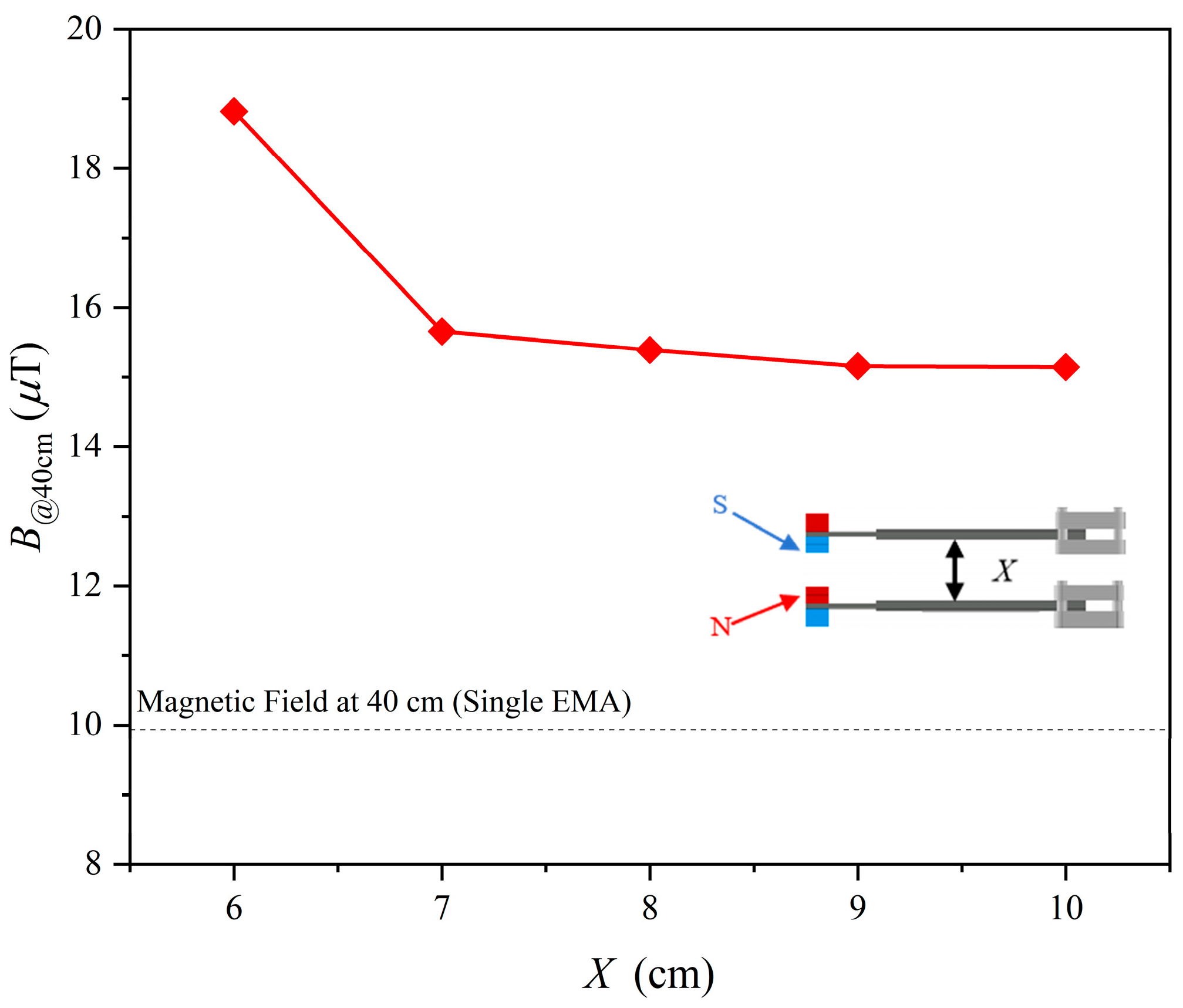 The effect of spacing in this configuration was evaluated by measuring the magnetic flux density at 40 cm